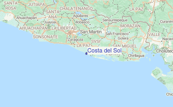 la playa costa del sol cuenta con una extension de entre 12 y 15 kilometros situada a 30 minutos del aeropuerto internacional de el salvador donde podrá gozar de restaurantes de lujo y hospedaje en familia desde los $100 el fin de semana disfrutando de las variadas celebraciones que se realizan asi como encuentros deportivos de voleibol y futboll de playa.